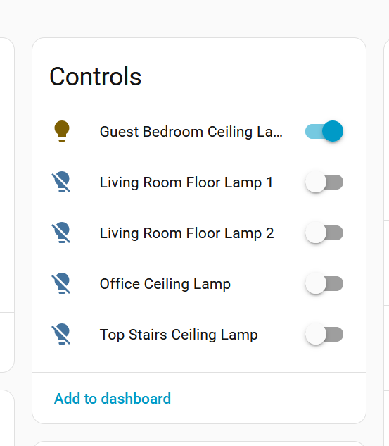 Which didn't make sense, until I realized something. Each group control appears on the Hub. My Hub's area is set to Living Room, so it was exposing all of those controls there, but because I use a different dashboard, it just never was obvious to me.