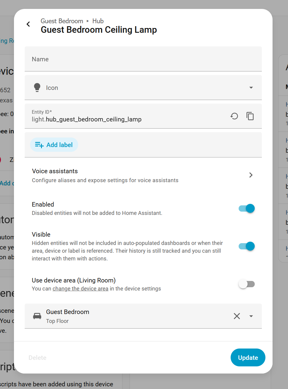 And I've noticed some odd devices. Like my Living Room suddenly has a device for Hub Living Room Office Ceiling Lamp
